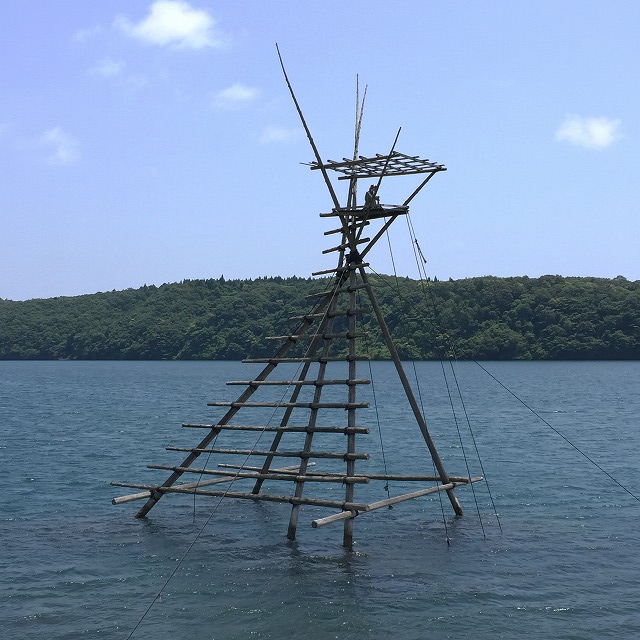 ボラは音に敏感で警戒心が強い魚のため、やぐらの上に待機して海底に仕掛けた袋網を見張ったそうです。