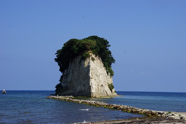 見附島という名は、弘法大師・空海(くうかい)が布教のために佐渡島からやってきた際、