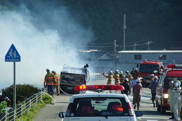 途中で車両火災があり通行止め!